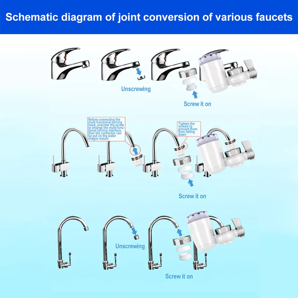 Легко и удобно: кран Фильтр для воды может быть установлен быстро и легко, один раз на месте, обеспечивает Непрерывная фильтрованная вода в течение нескольких месяцев. Которая обеспечивает защиту для всех ваших Для всей семьи.
