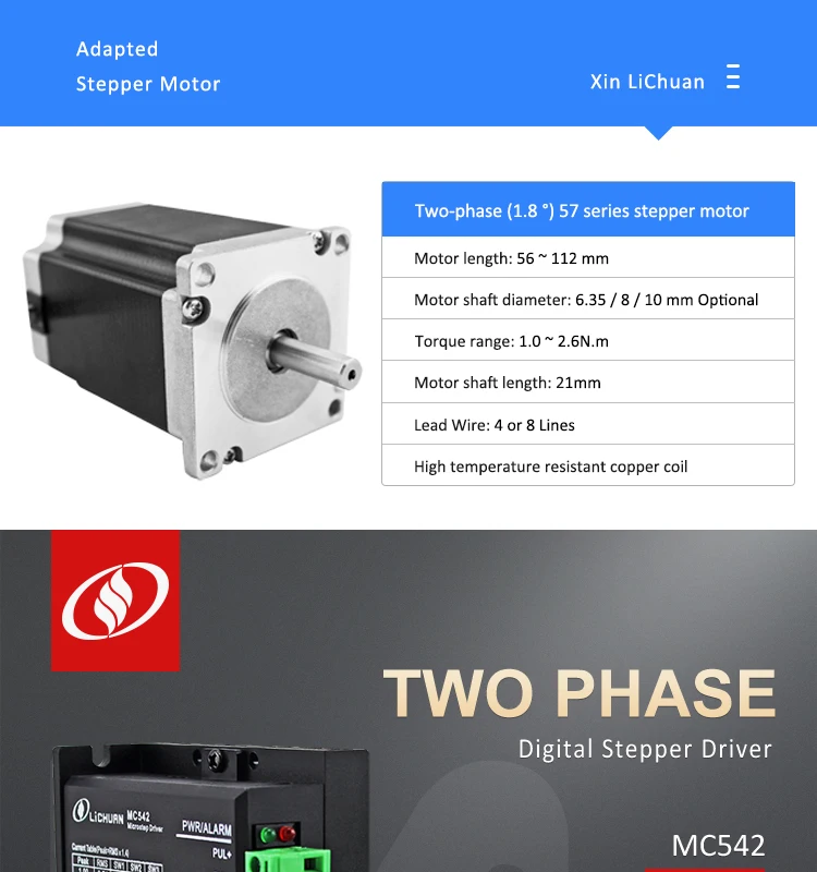 MC542 основан на управлении DSP нового поколения цифрового двухфазного гибридного шагового двигателя драйвер может быть настроен в соответствии с потребностями пользователя в пределах 512 делений и номинального тока в пределах любого текущего значения, из-за внутреннего увеличения автоматической идентификации параметров двигателя, используется для различных двигателей с соответствующими рабочими параметрами, Двигатель работает очень гладко, очень мало шума.