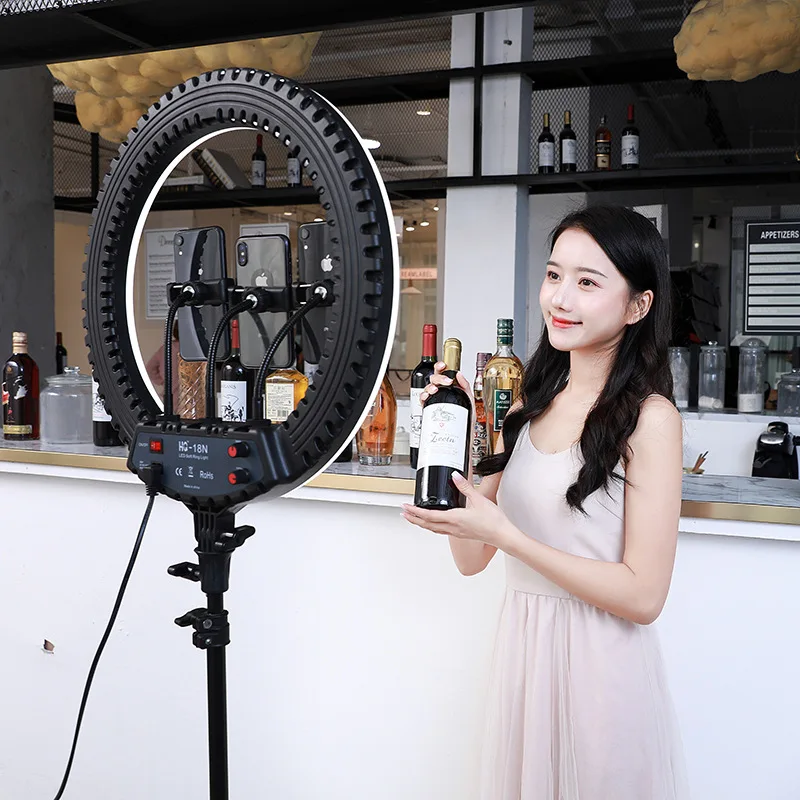 Светодиодный кольцевой светильник 18 дюймов для фотографии, светильник для камеры телефона, макияжа, видео кольцевая лампа со штативом и дистанционным управлением прямой трансляции Особенности: Светодиодный кольцевой светильник SMD с регулируемой яркостью, 18 дюймов, широкий диапазон затемнения: 1%-100%. Специальный светодиодный SMD дизайн, легкий и портативный. Постоянный ток, низкие потери мощности. Отсутствие ультрафиолетового и инфракрасного излучения светильник излучения, низкая теплоотдача, безопасность и защиту окружающей среды. Длительный срок службы более 50000 часов. С усиленной гибкой рукояткой, которая будет свободно перемещаться и никогда не свалится. Сверхдлинный шнур и сверхпрочные винты для большого пальца. Комплект цветных фильтров из пластика: оранжевый, белый Широко применяется при естественном освещении под обстановку вне светильник, наполнитель светильник портретной съемке, на модных показах, свадьбах, рекламной съемке, съемке видео и т. д.