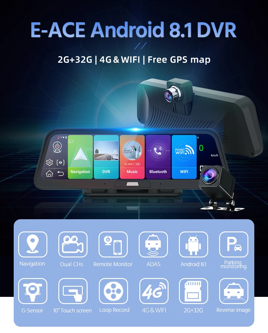 -1 видеорегистратор -Руководство пользователя-1 шт. -1 x устройство для чтения карт USB (подарок) -1x1080P камера заднего вида с кабелем 6 метров -1 x понижающая линия для 24H мониторинга парковки -Модуль GPS-1 шт.