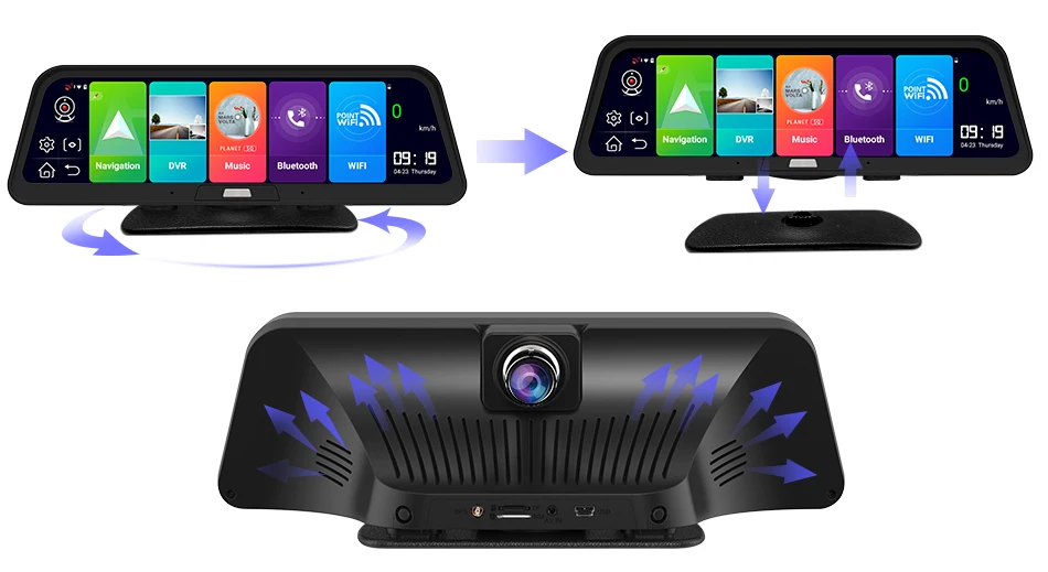 -1 видеорегистратор (без камеры заднего вида) -Руководство пользователя-1 шт. -1 x устройство для чтения карт USB (подарок) -1 x понижающая линия для 24H мониторинга парковки -Модуль GPS-1 шт.