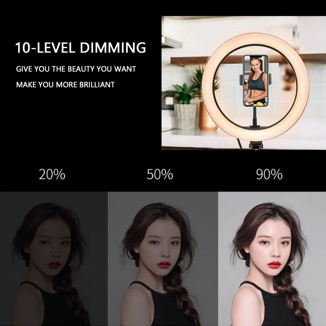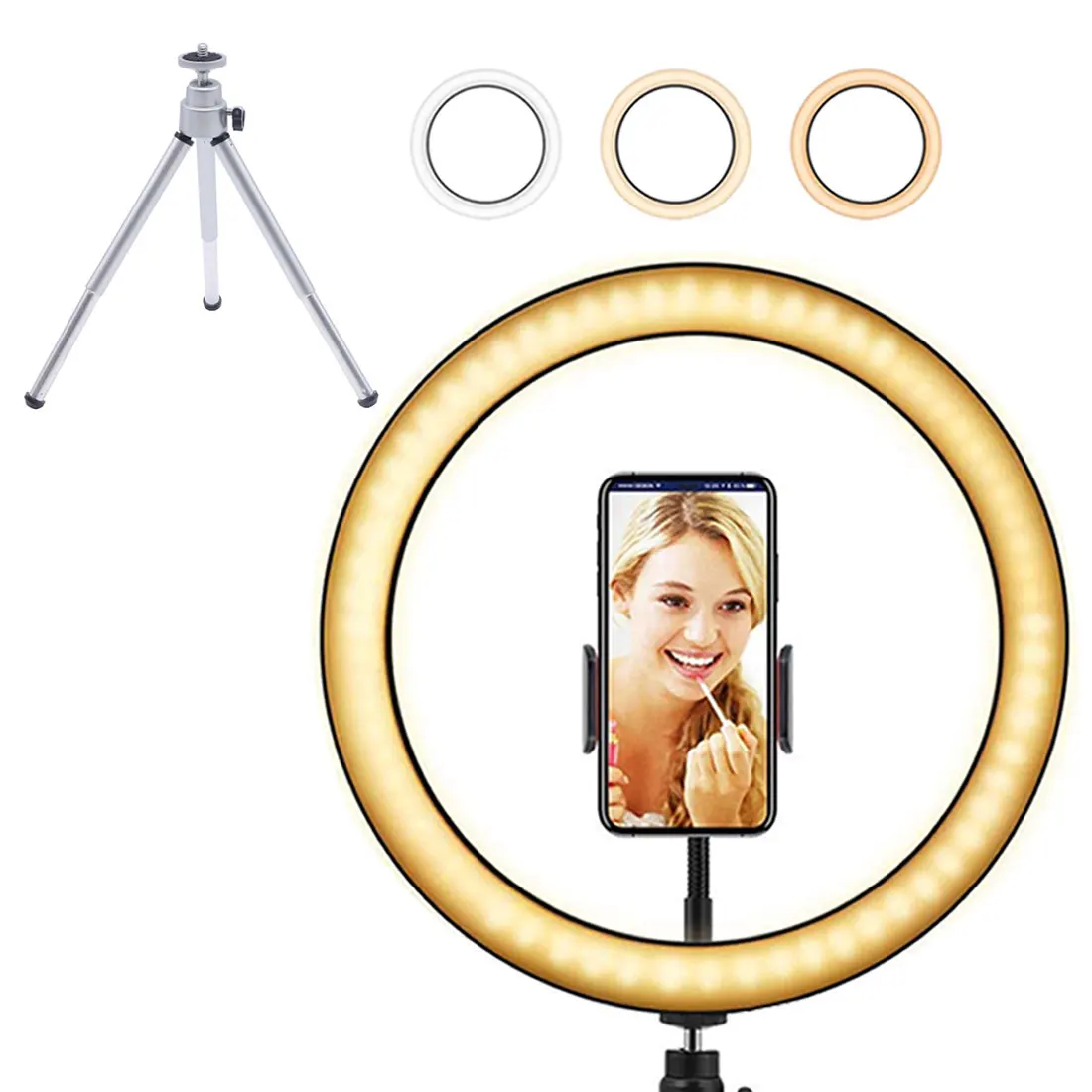 2. Светильник кольцо имеет 3 различных светильник ing варианты: белый, теплый желтый, теплый белый и 10 различных уровней яркости, таким образом, вы всегда будете иметь идеальное количество светильник.