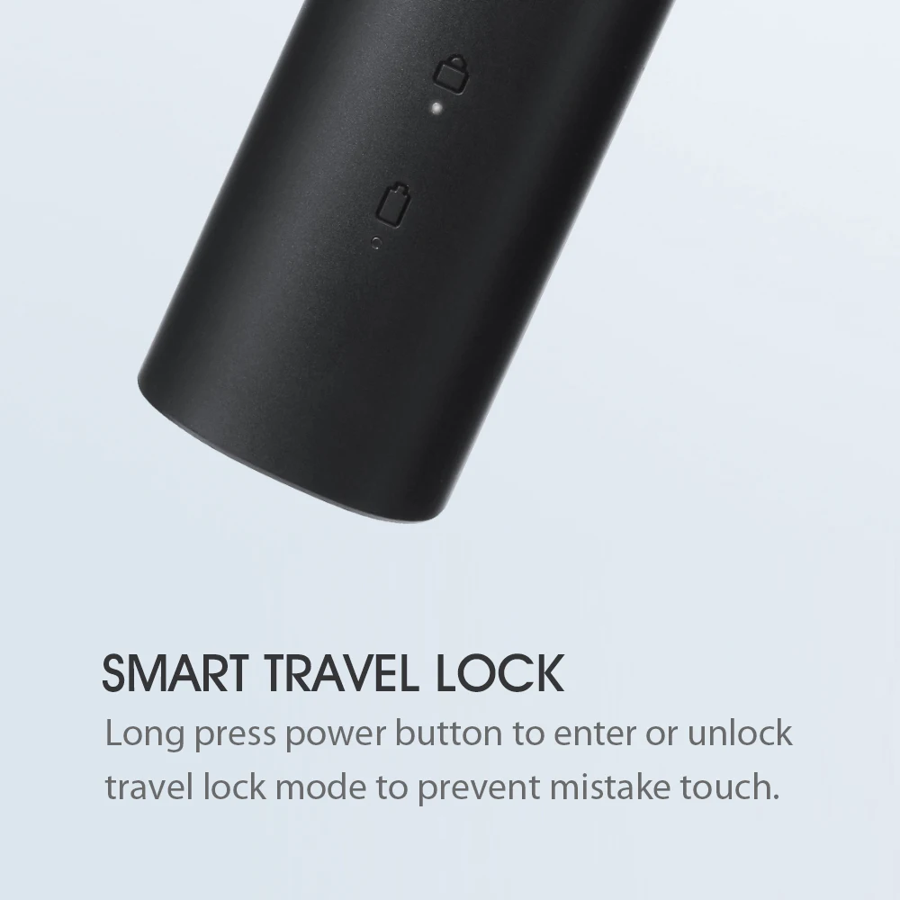 -Умный дорожный замок, защита каждый момент. Интеллектуальный анти-mistouch, долго нажимайте клавишу, вы можете войти в блокировку путешествия или разблокировать состояние, чтобы предотвратить случайное прикосновение и запуск бритвы в сумке для путешествий, что создает потенциальную опасность для безопасности.
