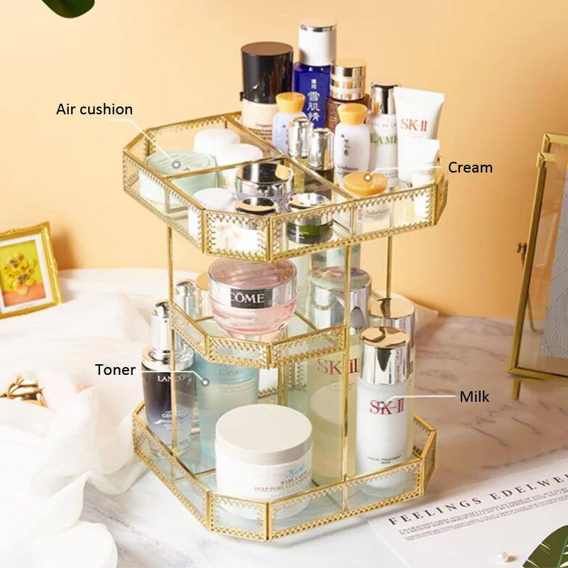 Научный дизайн, большая вместимость, сортировка и хранение, предметы помещаются с первого взгляда, более удобно брать Дно оснащено вращающимся дном, которое может поворачиваться на 360 ° по желанию, и может быть выбрано и помещено по желанию Спецификация: Материал: металл Особенность 1: вращение на 360 ° Особенность 2: устойчивость к падению и долговечность Функция: косметическое хранилище