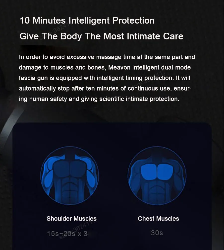 Параметры изделия Название продукта: Интеллектуальный двухрежимный пистолет fascia Вес изделия: 0,8 кг Интенсивность: 5 двойных интеллектуальных режимов Рабочая среда: 0 ~ 40 ℃ Питание: перезаряжаемый литиевый аккумулятор Исполнительный стандарт: GB4706 Распространенная проблема -Что такое фасциевый пистолет? В чем польза? Прежде чем разобраться в пистолете fascia, нужно знать, что такое "fascia". Фасция похожа на крупную сетку, которая обертывает опорно-двигательный аппарат и внутренние органы. Физические упражнения или Плохая осанка приведут к ее порче и повреждениям, что приводит к адгезивным суставам, что приводит к боли в мышцах и слабости, вызывая дискомфорт человека. С помощью Meavon каждый фасциевый пистолет может стимулироваться сильными и высокочастотными вибрациями, глубоко проникая в мышцы, способствуя кровообращению, расчесывая спайки мышц, расслабляя жесткие и тугие группы мышц, И избавляет от боли и усталости, вызванных физическими упражнениями. Для восстановления организма. -Что такое интеллектуальное преобразование частоты в двойном режиме? Фасциевые пистолеты Meavon основаны на сохранении интенсивности массажа сердцевины 1800-3200 об/мин, И инновационно добавляют два режима преобразования частоты "успокаивающий и расслабляющий" и "глубокий массаж" для имитации традиционных техник массажа, сильный и слабый. Углублять шаг за шагом, постепенно и постепенно расслаблять болящие мышцы, легко адаптироваться к потребностям разных людей, чтобы вы могли наслаждаться профессиональным массажем в домашних условиях. -Как долго его можно зарядить один раз? Meavon помещает в каждый пистолет fascia высокопроизводительный литиевый аккумулятор емкостью до 2900 мАч. Его можно использовать непрерывно около 14 часов в ежедневном 1 режиме, рассчитывается согласно ежедневному массажу в течение 10 минут, и может использоваться непрерывно около 2,5 месяцев при полной мощности. Беспроводная Зарядная база удобна для хранения, освежает и не занимает места, позволяя наслаждаться безудержным массажным опытом. -Изделие является водонепроницаемым? Пистолеты Meavon fascia не имеют водонепроницаемых функций. Храните вдали от источников воды во время использования, чтобы избежать повреждений деталей, вызванных вторжением воды. Если внешний вид изделия испачкался, можно протереть его влажным полотенцем и нейтральным моющим средством, поместить в прохладное и проветриваемое место и высушить. -Могу ли я взять самолет? Meavon содержит литиевую батарею внутри каждого пистолета fascia Для обеспечения срока службы батареи. В соответствии с правилами управления авиационной безопасностью электронное оборудование, содержащее литиевые батареи, нельзя перевозить на самолете после проверки безопасности и помещать на багажник или нижнюю часть сиденья. Уход. -Не рекомендуется для людей Фасциальный пистолет Meavon в основном используется для массажа и релаксации после физических упражнений для снятия мышечной боли и дискомфорта. При наличии следующих симптомов или состояний рекомендуется проконсультироваться с лечащим врачом перед выбором применения: беременным женщинам, осложнениям при диабете, ношению кардиостимулятора, людям, которые недавно прошли операцию, грыжа поясничного диска, эпилепсия или мигрень.