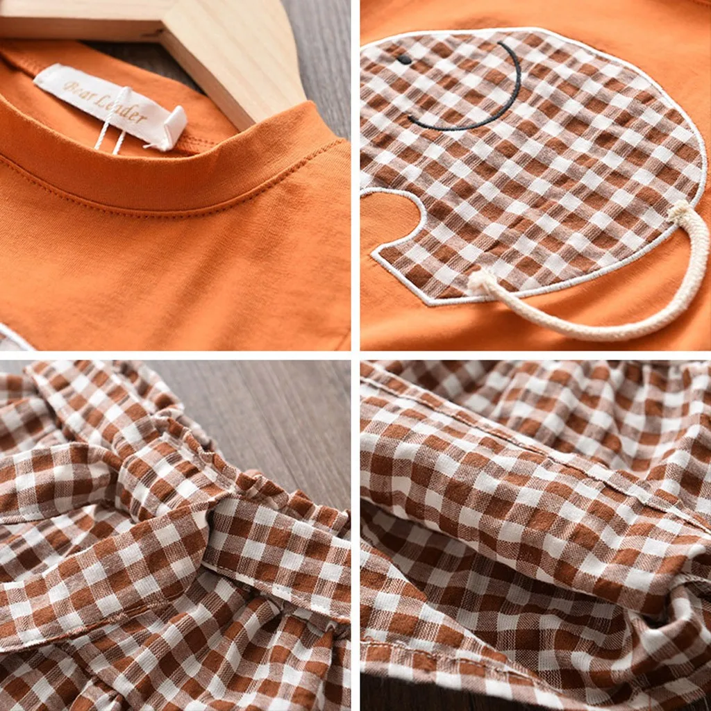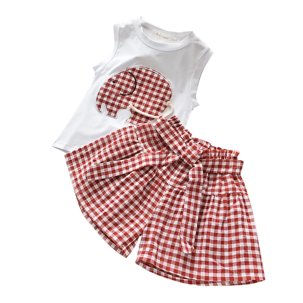 Детская футболка без рукавов С Рисунком Слона для маленьких девочек + клетчатые короткие штаны, костюм