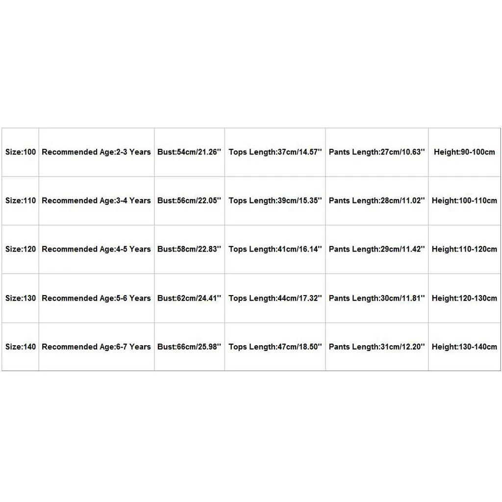 | Размеры | Рекомендуемый возраст | Обхват груди | Топы Длина | Брюки Длина | Высота |