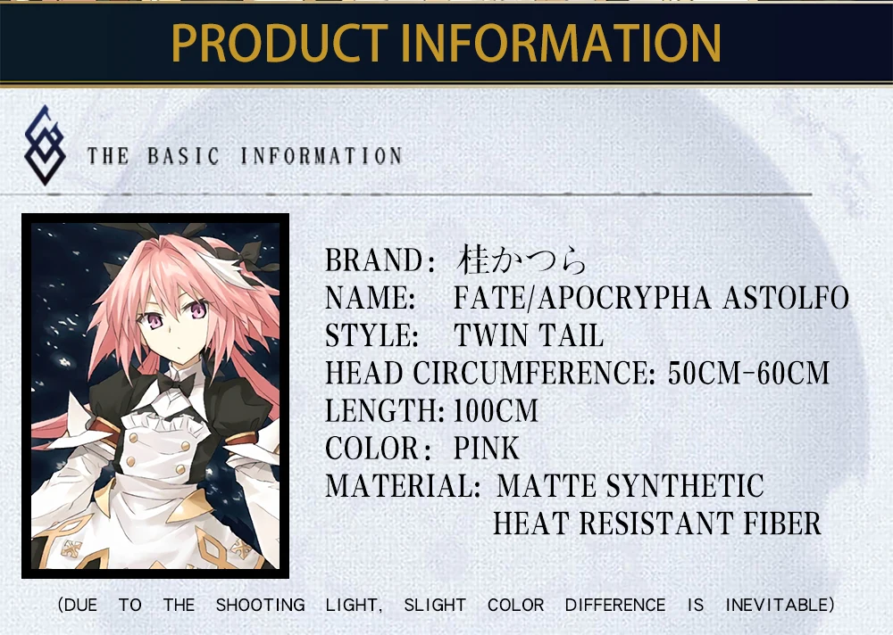 В наличии Uwowo игра Fate Grand Order/FGO Astolfo косплей парик 100 см длинные двойные хвосты розовые волосы