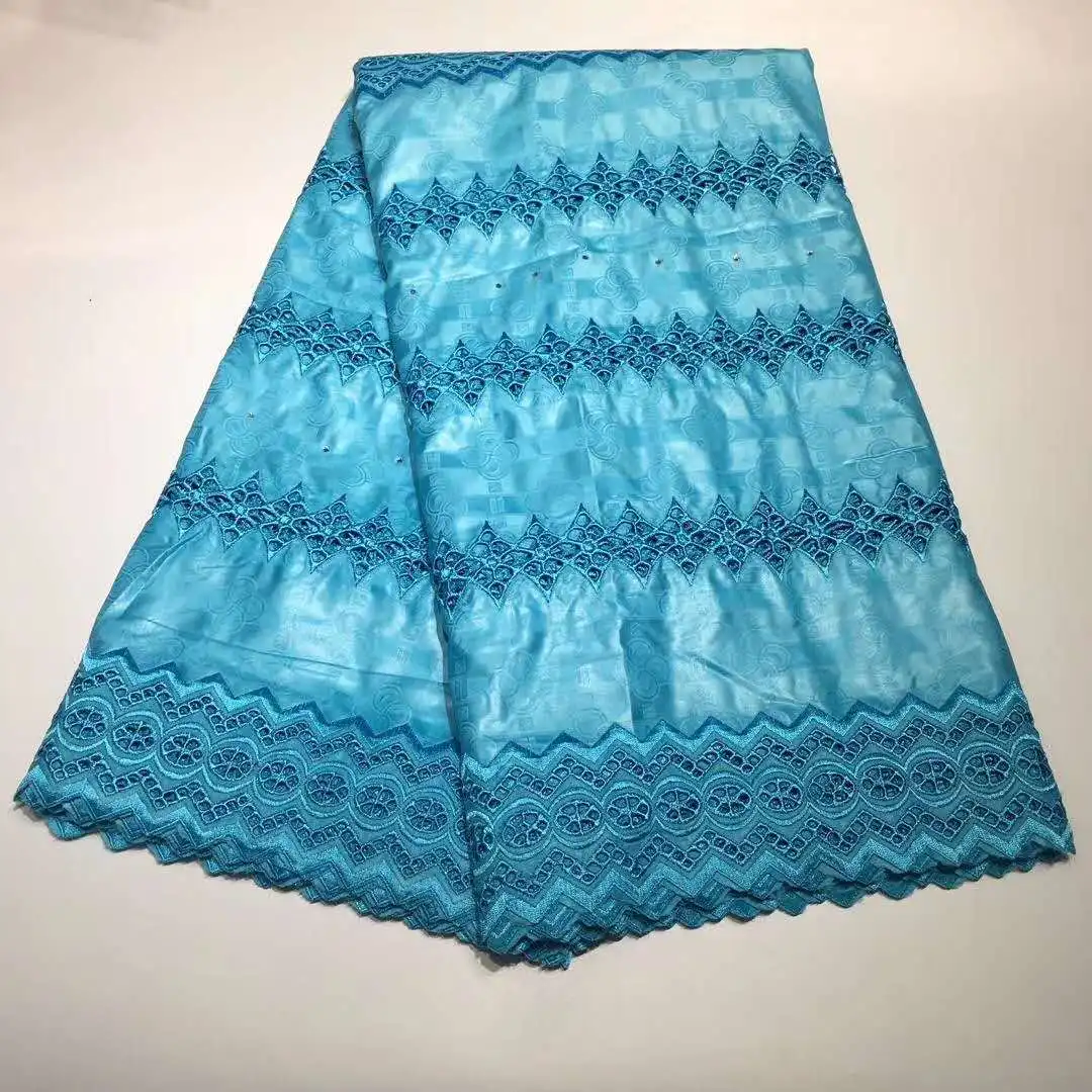 Небесно-Голубой перфорированный круг камни Африканский Базен Riche ткань вышитые высокое качество 5Yds французский умывальник парча Лоскутная Ткань