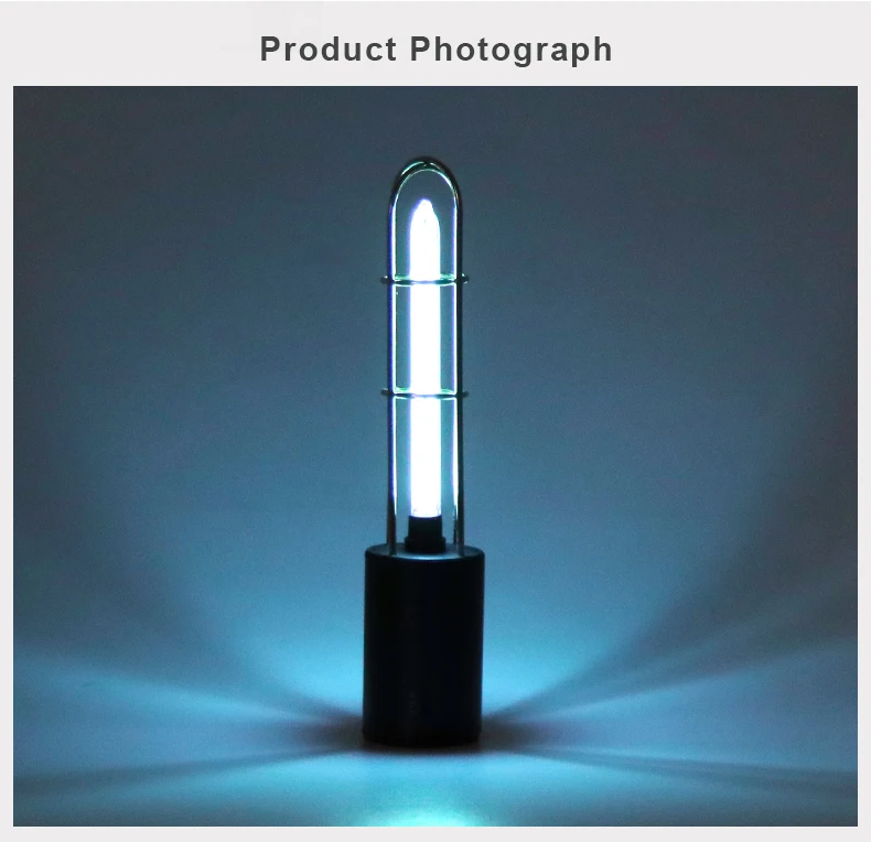 Технические характеристики: Цвет: черный/синий Материал: кварцевая трубка + алюминий Мощность: 5 Вт Вход Напряжение: DC5V Интерфейс зарядки: Micro USB Тип батареи: встроенный 3,7 V 500mAh литий-полимерный аккумулятор Режим: UVC + O3 Время работы: 15 мин/использование Длина УФ-волны: 185-280нм Особенности: 1. Изготовлен из кварцевого материала, длительный срок службы, высокая скорость передачи и лучший эффект стерилизации. 2. Эффективно против бактерий и вирусов воздуха и поверхности, стерилизация без мертвого угла, более тщательно убивает искривление. 3. УФ + Озон двойной убивает микробы и вирусы в течение нескольких минут, скорость до 99.99%. Озон низкой плотности, пожалуйста, не стесняйтесь использовать. Если у вас есть аллергия на парфюмы и вы не можете использовать дезодорирующее средство для комнаты, это может помочь вам, устраняя запахи без каких-либо духов в воздухе. 4. Перезаряжаемый и портативный, питание от USB, может использоваться в любом месте. 5. Может использоваться в холодильнике, автомобиле, спальне, кухне, обувном шкафу, стиральной комнате, детской комнате, доме для домашних животных и других небольших помещениях.