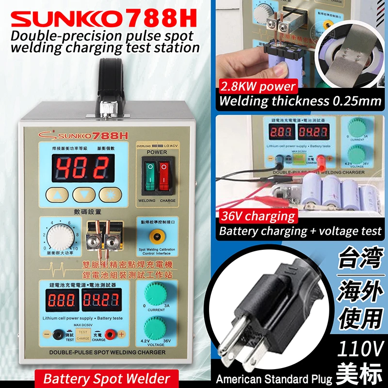 SUNKKO 788H точечная Импульсная Сварка машина 1,5 кВт точечный сварщик светодиодный светильник литиевая батарея тест USB зарядка для 18650 аккумуляторной батареи сварка Преимущество: 1,788 H-USB основан на производстве мобильных устройств, на основе оригинальных исследований и разработок 788H продуктов, для сборки мобильных устройств после старения тестового заряда, проверка цепи мобильного источника питания может работать должным образом, значение значения тока заряда. 2. Проверьте, оснащена ли печатная плата мобильного источника питания функцией защиты от зарядки. 3,788 H-USB одновременно адаптируется к мобильным телефонам, обслуживанию батареи планшетного ПК после тестирования и испытания на старение. 4,788 H-USB имеет три стандартных usb-порта для зарядки 5 В, максимальный выходной ток 3 А, С 2-3а током смартфонов, планшетных ПК, мобильных устройств и других тестов зарядки очень подходит. Особенности: 1. Точечная сварка, тестирование литиевой батареи, зарядка трех функций. 2. Управление микрокомпьютером 199 (99*1; 99*2) Настройка параметров точной сварки. 3. Ультра-быстрый режим выбора сварки с одним импульсом и двойным импульсом. 4. И импульсная группа (16 импульсов) типа ручки, высокотоковый медленный сварочный режим, подходит для более толстой сварки никелевой пластины. 5. С 4,2 V-36V 3A регулируемый Постоянное напряжение постоянного тока для зарядки устройства для того, чтобы удовлетворить большинство литиевая батарея после сварки зарядки или испытания. 6. Уникальный тестер батареи может проверить ток зарядки литиевой батареи. 7. С педальным сварочным пусковым переключателем, улучшает качество сварки. 8. Профессиональная Сварка устройства регулятора давления иглы.