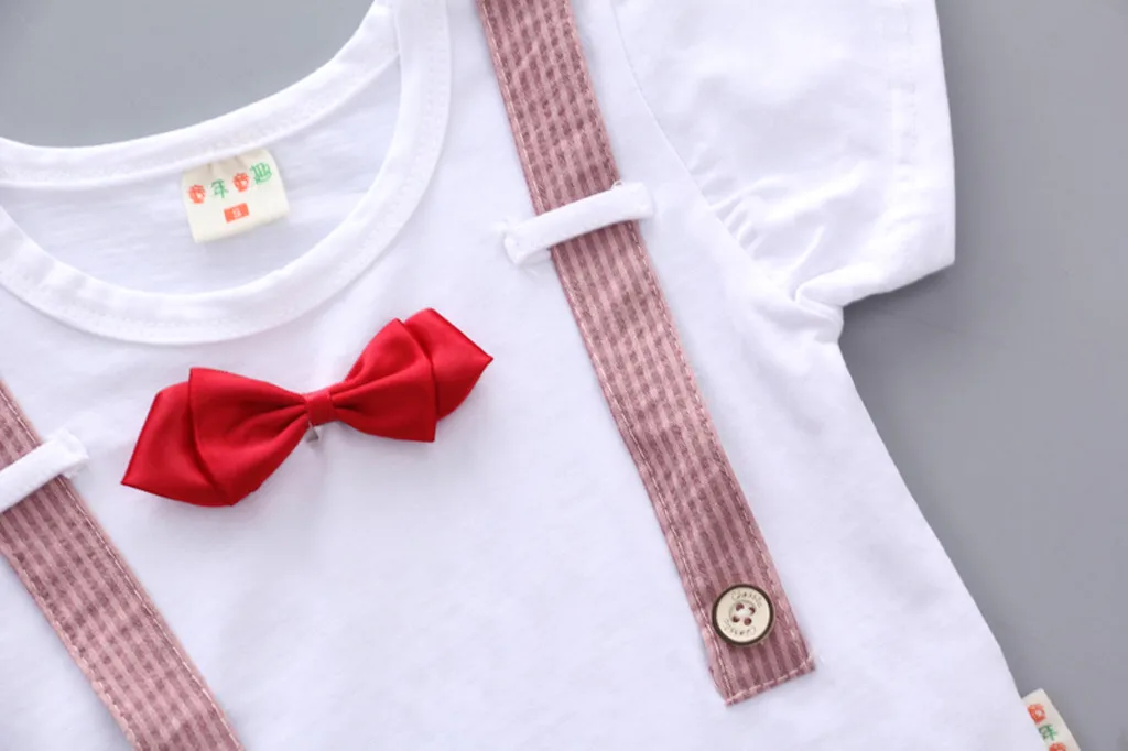 Джентльменская футболка с бантом для маленьких мальчиков, топы, шорты штаны Одежда, комплект одежды