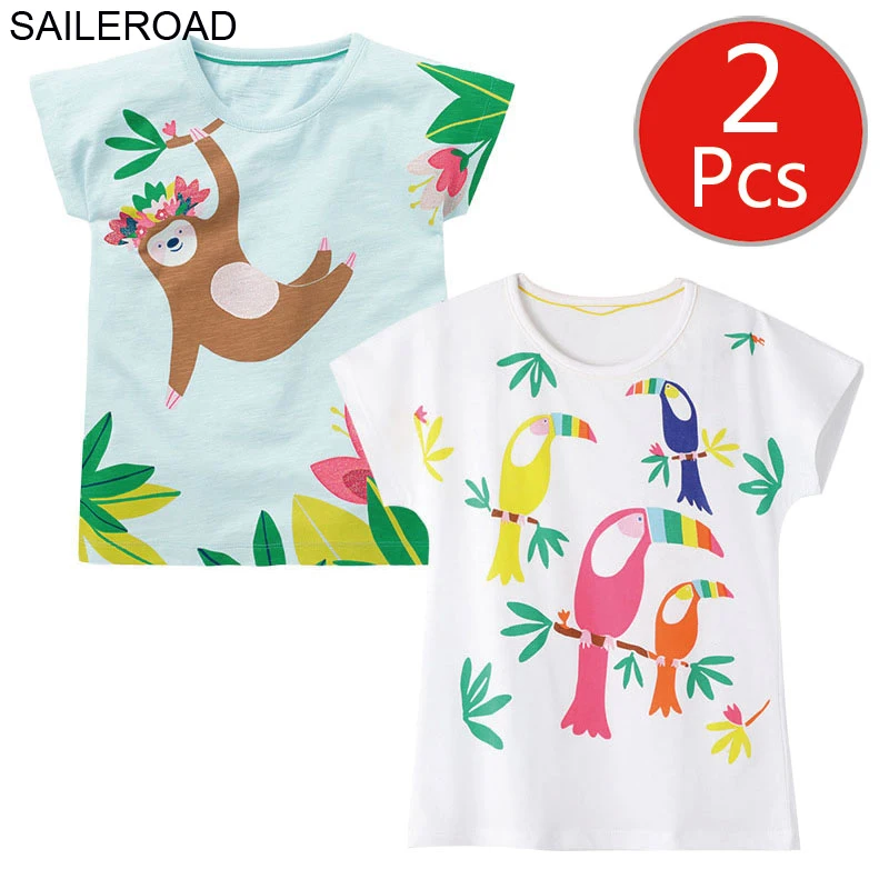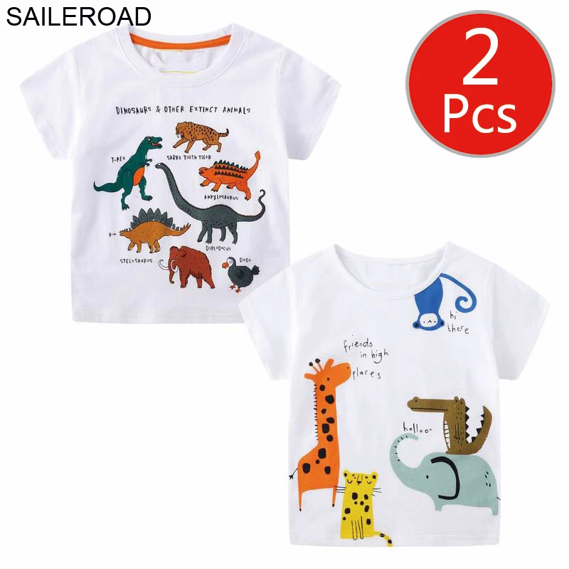 SAILEROAD/оптовая продажа футболок из 2 предметов для мальчиков Одежда для девочек с аппликацией в виде животных летние топы для маленьких детей, детская одежда с изображением жирафа из альпаки