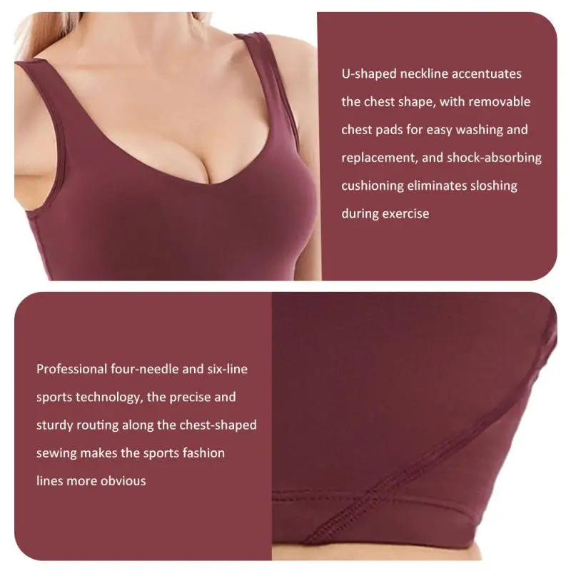U-образный Вырез: большой дизайн бюстгальтера с u-вырезом, подчеркивающий обхват груди, украшающий шею, формирующий спортивный канав, съемный коврик для груди, удобный для стирки и замены, ударопрочный и буфферный, устранение тряски, вызванной движением.