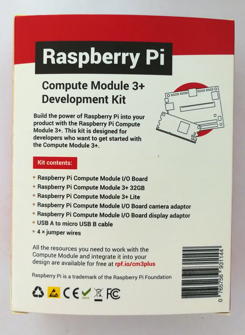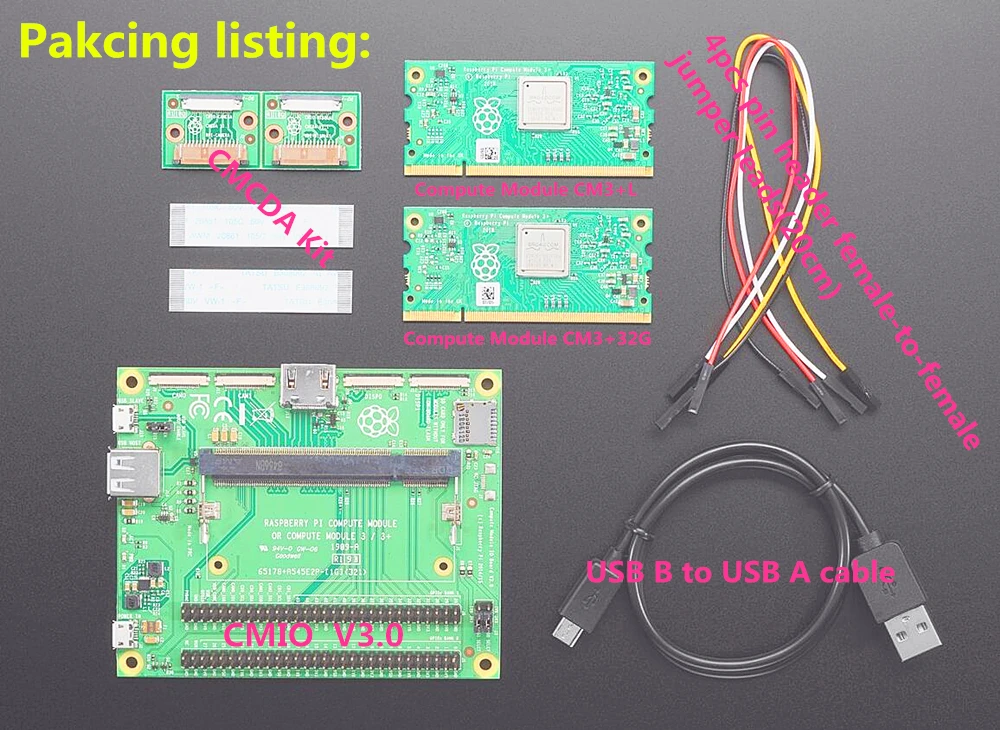 В комплект входит плата Compute Module IO (CMIO), которая является простой, с открытым исходным кодом, в которую можно подключить вычислительный модуль. Плата содержит 120 контактов GPIO, порт HDMI, usb-порт, два порта камеры и два порта дисплея.