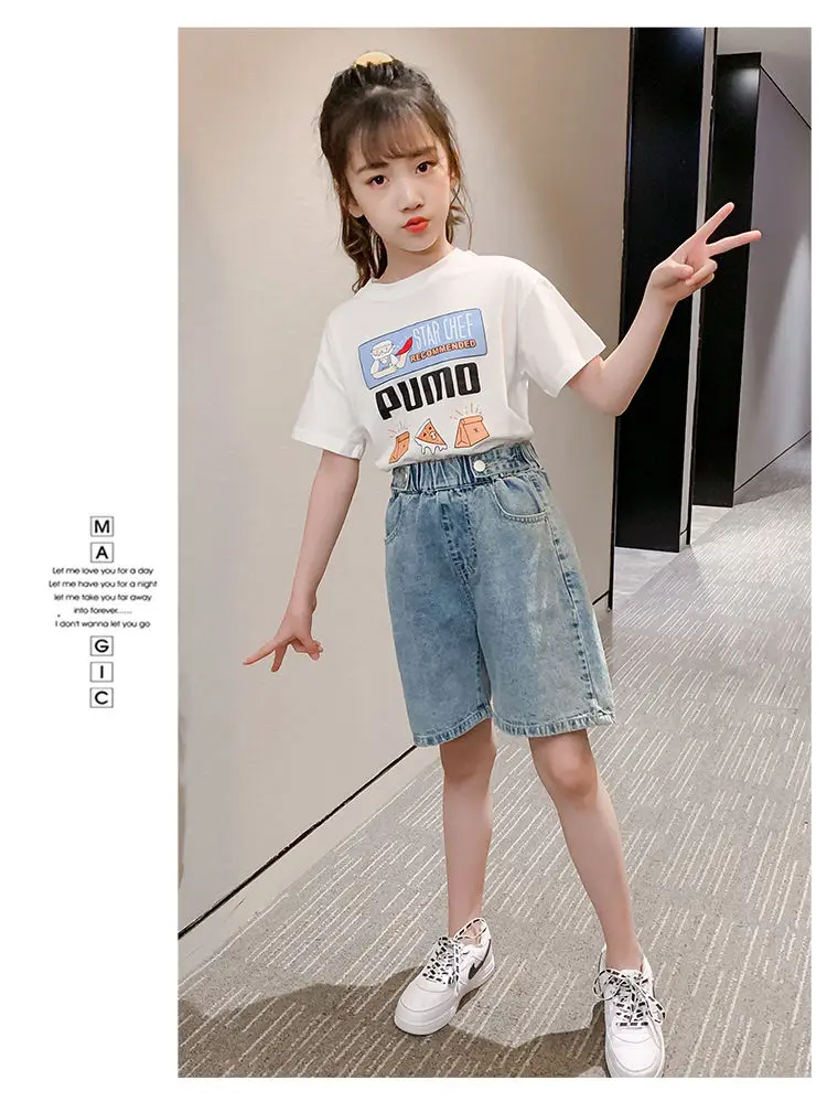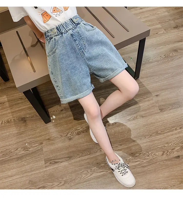 Модные джинсовые шорты для маленьких девочек в Корейском стиле; Сезон лето; Детские синие потертые джинсы для девочек; Свободные шорты; Джинсовые штаны