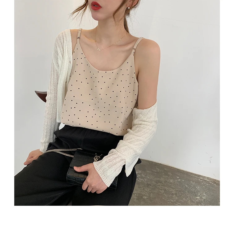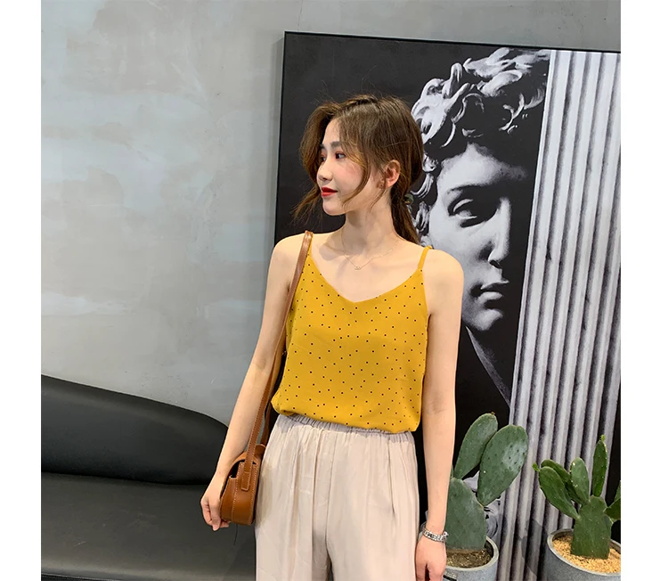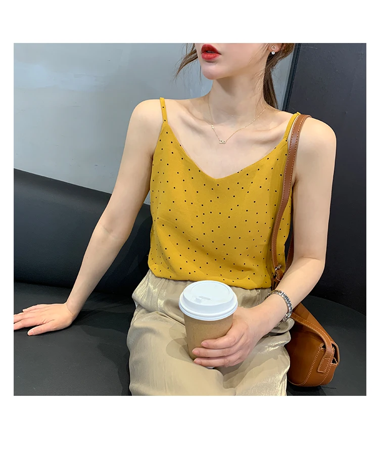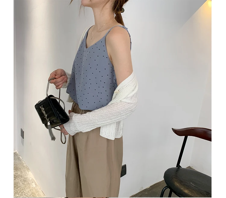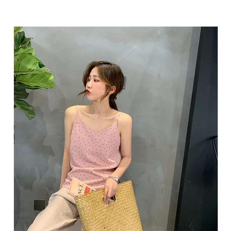 Майка MATAKAWA Женская трикотажная на тонких бретельках корейский топ с V-образным