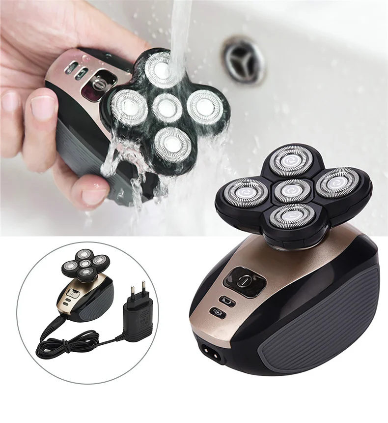 1. Пять независимо плавающих головок, интеллектуальное бритье. 2. Он может побрить вашу бороду, голову, одну машину двойного назначения, экономичный и практичный. 3. Весь корпус можно стирать и чистить проточной водой. 4. Поставляется с всплывающим триммером, который используется для обрезки усов и бакенбардов. 5,5 В 1 комплекте, кроме головки бритвы, есть Точная Головка триммера, Головка триммера для носа и ушей, мягкая губка для лица и щетка для очистки лица. 6. Прецизионная Головка триммера: Используйте вместе с тремя различными концевыми гребнями (3 мм, 5 мм, 7 мм) для обрезки, легче создавать индивидуальную прическу. 7. Головка триммера для носа и ушей: используется для удаления носа и ушных волос. 8. Очищающая кисть для лица: с очень тонкой щетиной удаляет масло и грязь на коже, подходит для отшелушивающий для лица, Очищающий. 9. Мягкая губка для лица: массаж перед бритьем для смягчения щетины для более легкого бритья. 10. Перезаряжаемый дизайн, встроенный аккумулятор 600 мАч, после 1 часа полной зарядки, его можно использовать непрерывно в течение 1 часа. Примечание: функция бритья головы подходит только для тех, кто часто остается лысой головой, потому что кожа головы людей, которые не всегда остаются Лысой головкой, относительно хрупкая, И внезапное бритье может повредить кожу головы.