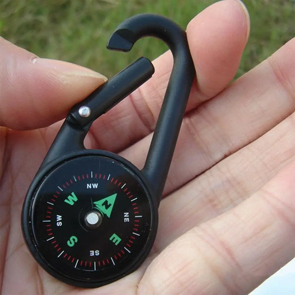Светодиодный Многофункциональный фонарик для использования вне дома, Нержавеющая сталь пряжка-компас термометр Карабин восхождение Для мужчин брелок Крюк