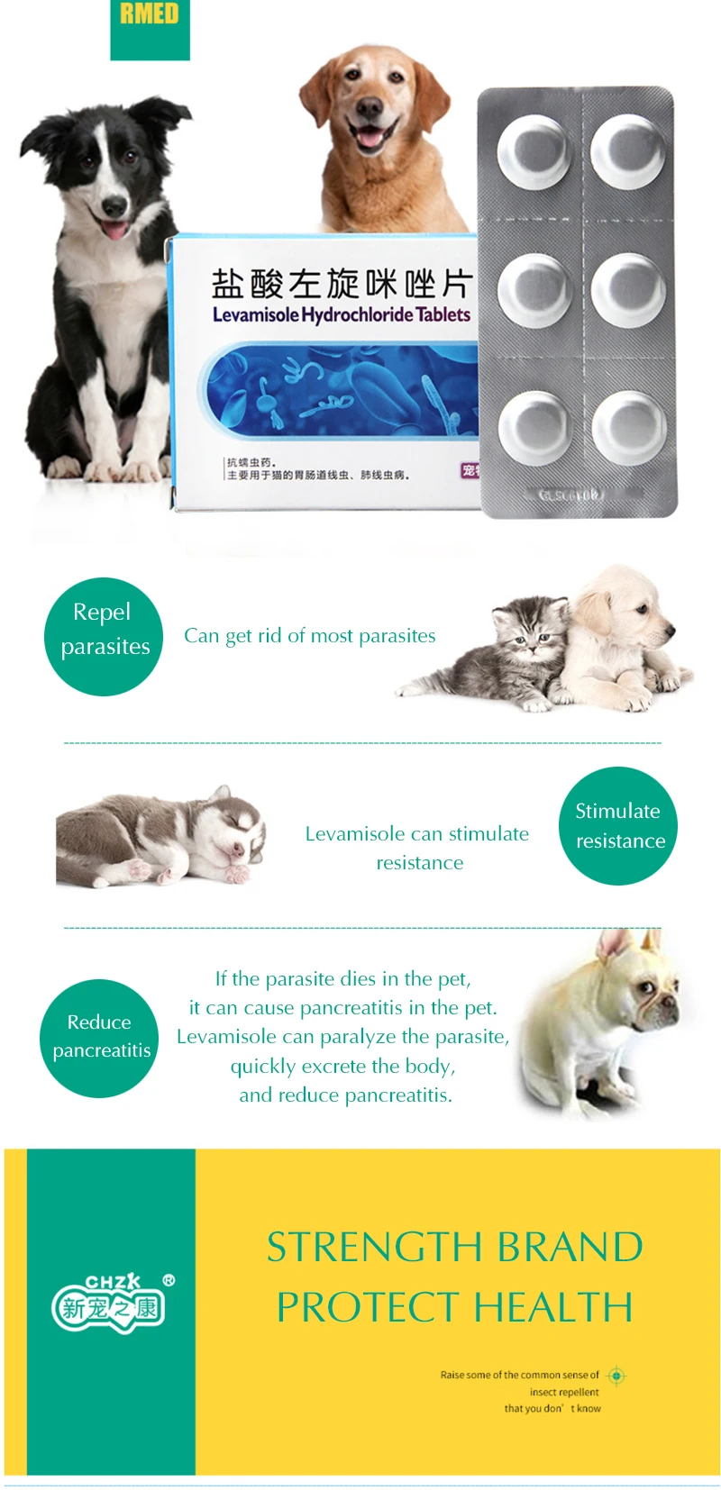 Описание товара Название продукта: таблетки левамизола гидрохлорида Подходит для домашних животных: собак и кошек Технические характеристики изделия: 25, поддерживающие шкалу мг/планшет 6 шт./кор. Срок действия: 2 года Использование: деworming в домашних животных Основные ингредиенты: Левамизол гидрохлорид Способ применения: Рекомендуется каждый 2,5 кг/шт. Примечание: домашние животные запрещены во время лактации Животные с экстремальной слабостью и дефектами функции печени запрещены Не размещайте его в пределах досягаемости детей и домашних животных Можно избавиться от большинства паразитов Нематоды Hookworm Fluke Ленточный червь Випворм Круглые черви Отпугивайте паразитов Стимулирующая устойчивость Уменьшает панкреатит Левамизол может стимулировать сопротивление