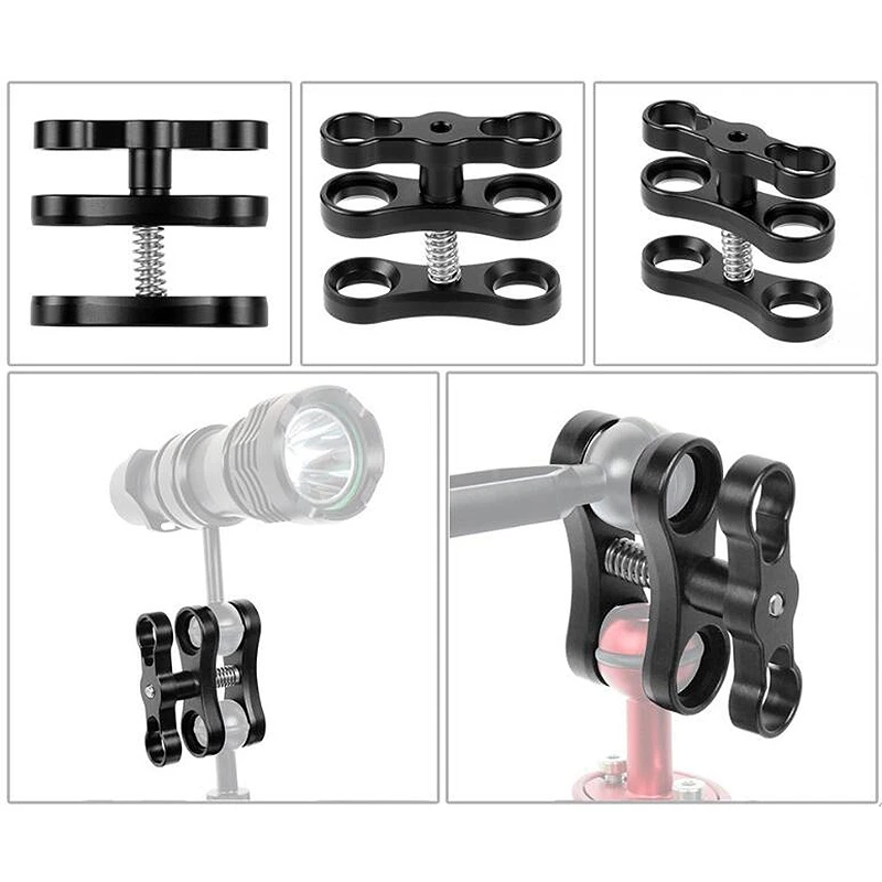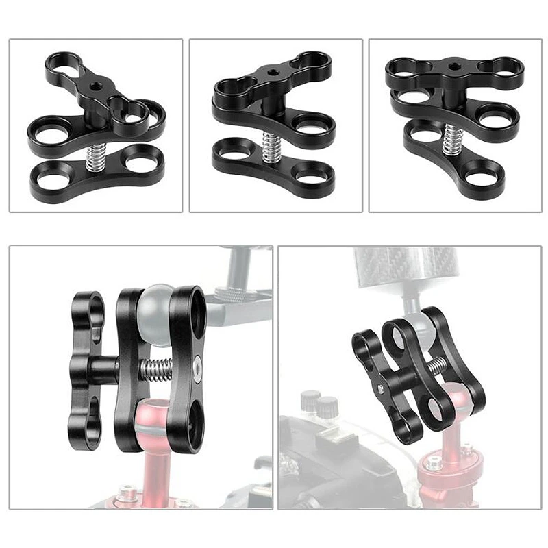 4. This standard clamp attaches two 1-inch diameter balls. Thicker plates provide the perfect combination of strength and range of motion. Plates are spring-loaded for easy assembly and breakdown of your arm system.