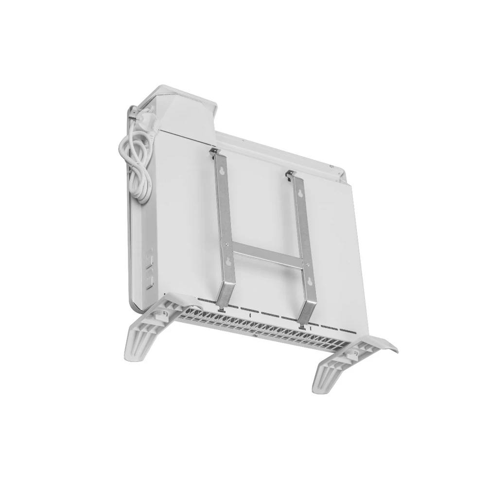 Конвектор подходит для установки на стену или пол. Для подвешивания в комплекте идёт рама, для пола – пара ножек.
