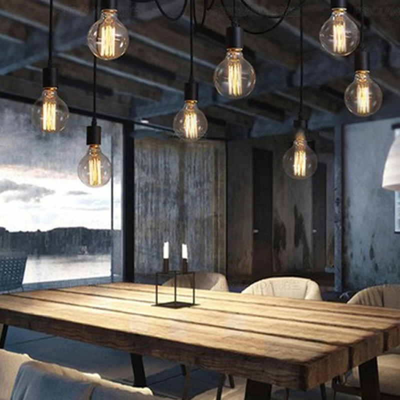 Sleeve Retro Lampshade Suspensions Vintage Adjustable RéTro Chandelier Ceiling Lamp (E27) Dining Hall Bedroom Hotel 5 Arms (Bulb