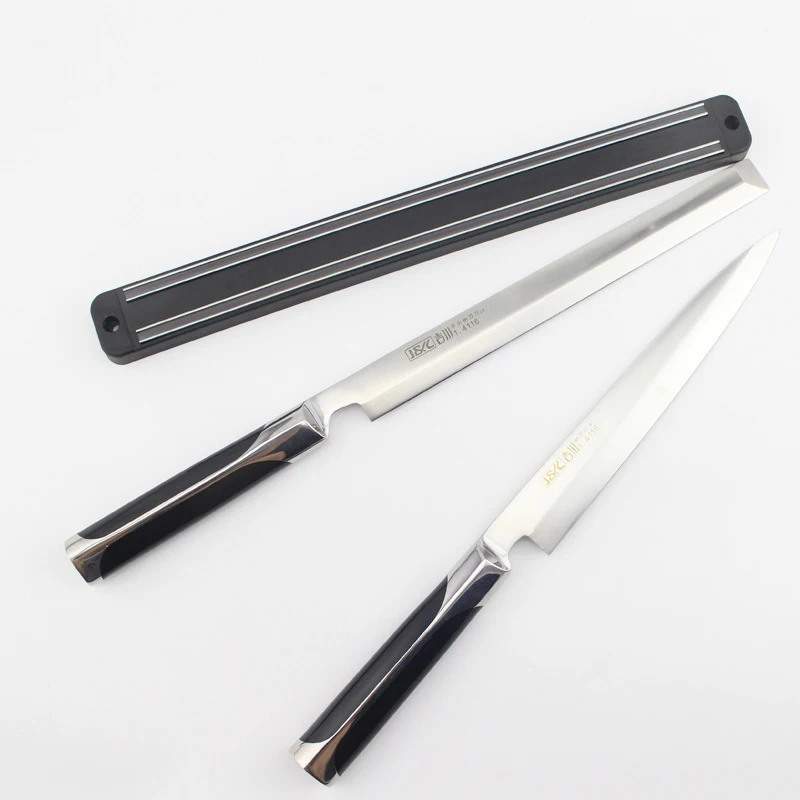 << Usage: This magnetic bar has an extended length that allows you to hold more knives. Can be used to hold knives, scissors, tools, keys, and whatever else.