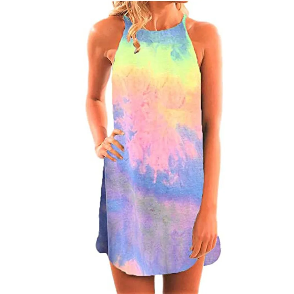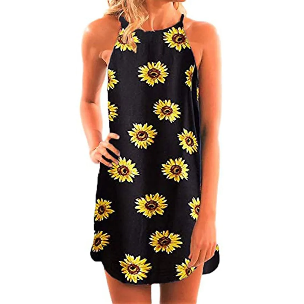 Женское повседневное мини-платье без рукавов с цветочным принтом, летние пляжные платья с лямкой на шее Пожалуйста, проверьте таблицу размеров перед заказом. Если вы не уверены в размере, пожалуйста, отправьте нам сообщение.