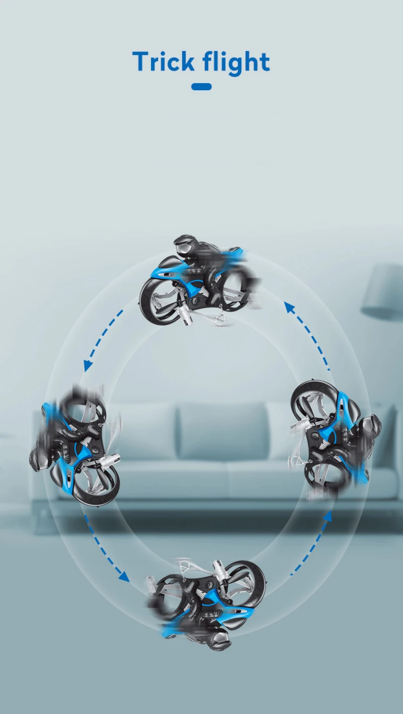 [Функция]: два в одном, наземный и воздушный, наземный таксирование, Воздушный полет, один ключ взлета, один ключ посадки, один ключ возврата, 360 ° трюк ролл, блестящие огни, пульт дистанционного управления 2,4G.