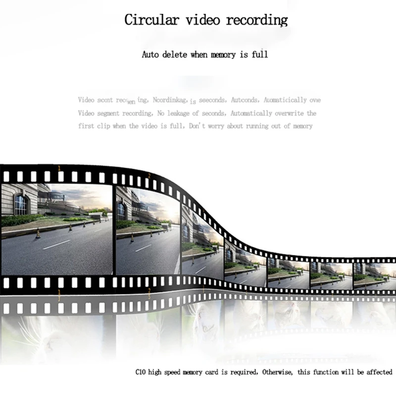 Характеристики: Объектив full HD 720P, широкоугольный объектив высокой четкости 150 градусов, дизайн корпуса. Встроенный g-сенсор для автоматической защиты файлов при столкновении, поддерживает автоматическое включение, чтобы начать запись видео после запуска автомобиля. Поддержка автомобильного и мобильного соединения, подключение к мобильному приложению; ADAS ligent assistant system.(необходимо подключить к Android 4,0 выше большого sn навигатора, который не входит в комплект)