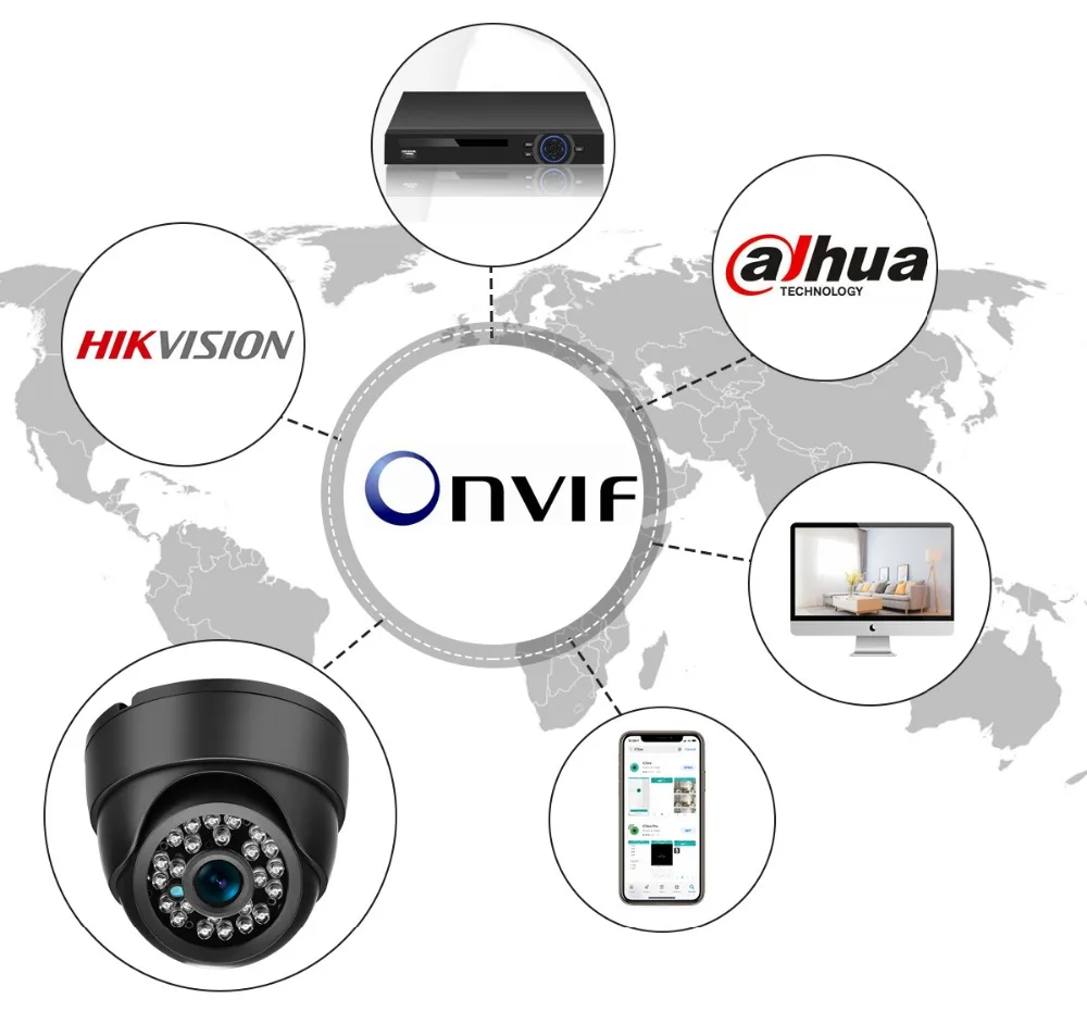 Камера может работать с большинством сторонних-вечерние Onvif 2,0 NVR.