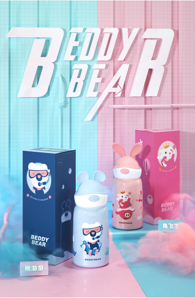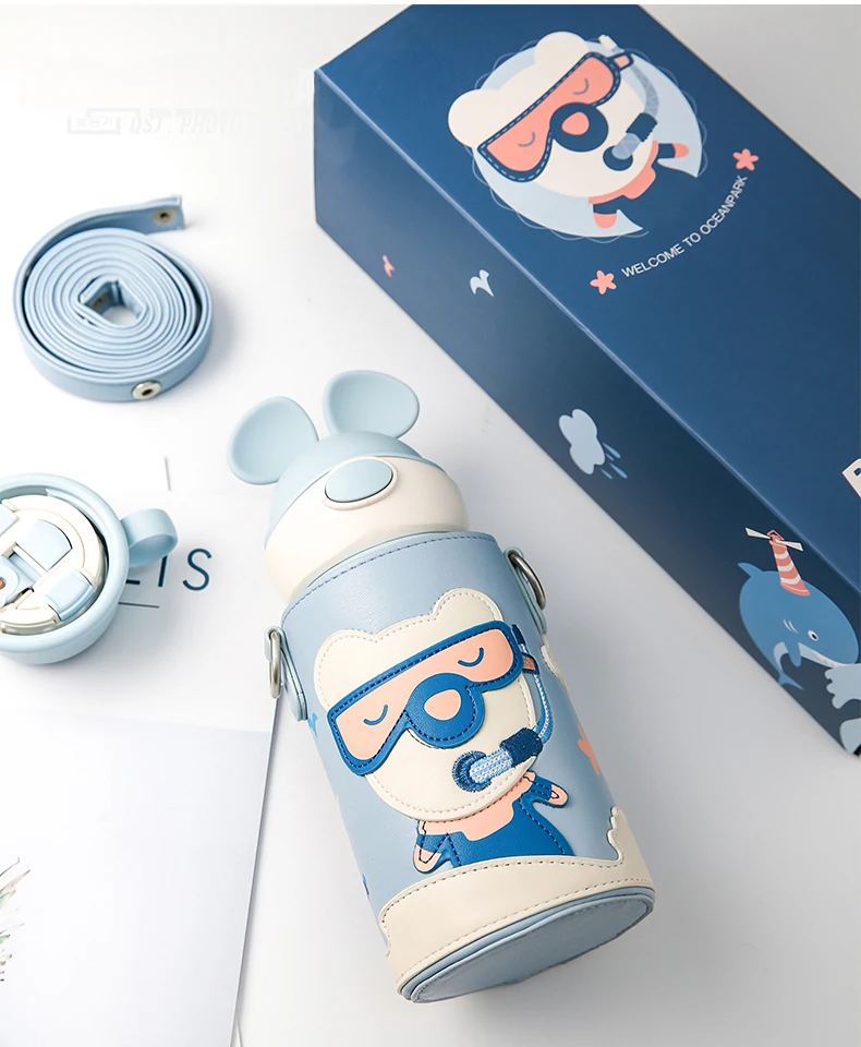 Термокружка Ins Kawaii Bear из нержавеющей стали вакуумная детская соломенная бутылка