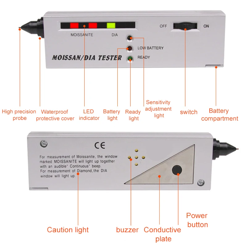 -- Простая работа: так просто работать, чтобы получить результаты, вы просто включите наш тестер Ручка детектор, размещая наконечник алмазного тестера на драгоценном камне. Если камень поддельный, кристалл или Фианит, тестер не будет звуковой сигнал. Вы можете использовать лупу 60X, увеличительные очки для определения четкости.
