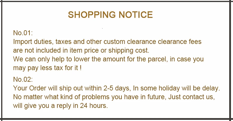 1. Импортные пошлины, налоги и другие таможенные сборы не включены в цену товара или стоимость доставки.Это ответственность покупателя. Пожалуйста, проверьте в вашем таможенном офисе, чтобы определить, какие дополнительные расходы будут до вашей покупки. Мы можем декларировать более низкую стоимость, чтобы помочь вам избежать некоторых налогов по вашему запросу. 2. Мы решим способ доставки для всехБесплатная доставкаЗаказы. Если вам нужен конкретный способ доставки, пожалуйста, оставьте нам сообщение при размещении заказа. 3.Наша цель-поставлять продукцию хорошего качества каждому клиенту. Все наши продукты были протестированы, проверены и упакованы в хорошем состоянии с надлежащими запасными частями. Если товары, которые вы получили, являются дефектными, пожалуйста, немедленно свяжитесь с нами, мы предоставим вам лучшее решение (повторно Замените или вернем деньги) 4. Пожалуйста, не открывайте спор или не пишите плохой или нейтральный отзыв напрямую, не связавшись с нами.У вас есть наши слова здесь: все проблемы могут быть решены путем хорошего общения, мы надеемся, что все наши клиенты могут удовлетворить наши продукты и услуги. Если у вас есть какие-либо проблемы с нашими продуктами или обслуживанием, пожалуйста, сначала свяжитесь с нами, и мы предоставим вам идеальное решение. Покупатели, которые размещают заказ, будут считаться согласны с этими условиями& Условий. 5.НашиНапрямую от производителя, Мы можем сделать не только обычные огни, показанные на веб-сайте, но и настроить свет в соответствии с вашими особыми запросами. Добро пожаловать, свяжитесь с нами. 6. Отправьте нам сообщение, пожалуйста, свяжитесь с нами в любое время, мы ответим Вам в течение 24 часов.