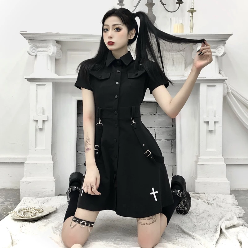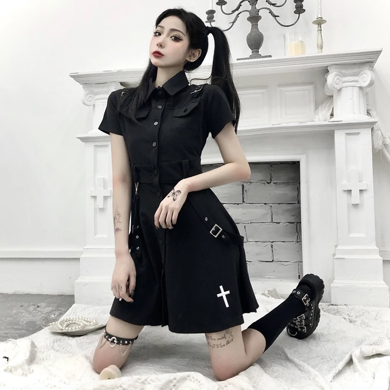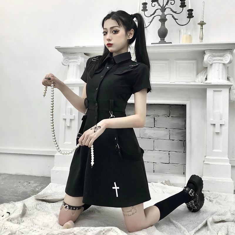 Женское платье с завышенной талией готическое отложным воротником и вышивкой