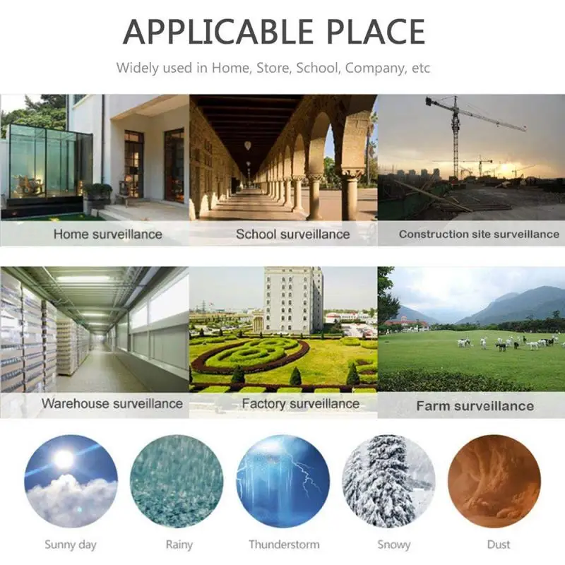 1920*1080P resolution ensures crystal clear image quality. See everything in great detail. Sharper and clearer than those of 720p cameras. Advanced night vision with 9 built-in infrared LED lights. Infrared lights automatically turn on when light goes dim. Display bright black and white images in the dark. Never miss a bit day or night.