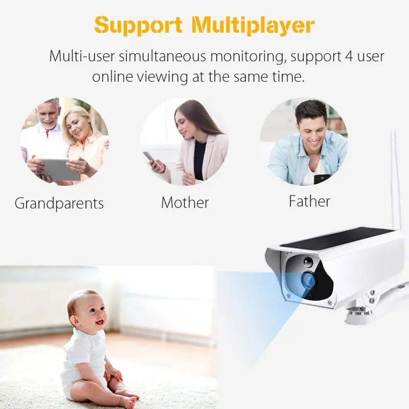 Эта безпроводная камера. Действительно беспроводная, простая в установке. Это питание от солнечной энергии, USB, питание от аккумулятора, 3 способа питания.The solar panels in the camera can only work properly with no less than one battery, because the charging principle is the battery charged by solar panels powers for the camera, which means the camera cannot work normally when there is only solar panel but without battery.