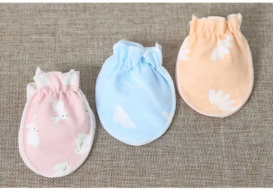 10 шт., детские перчатки для новорожденных, 100% хлопок, для детей 0-3 месяцев, для младенцев, противоскользящие перчатки для рук с милым принтом для новорожденных, детские перчатки