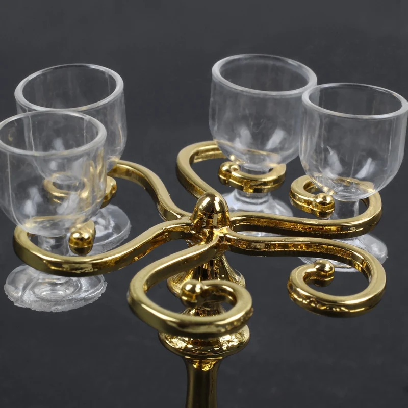 4 шт. чашки для бокала красного вина с металлическим держателем для стойки золотой и 1x1:12 кукольный домик фонограф семейная мебель золотой + черный