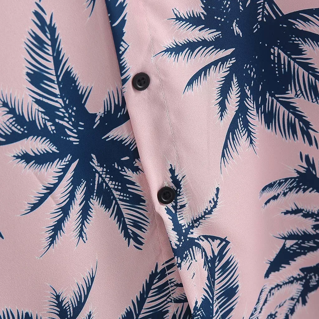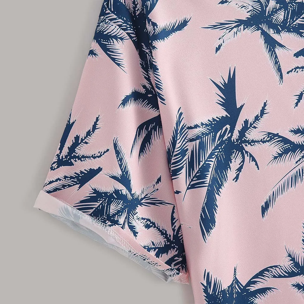 3. Отложной воротник, КороткийРукав, на пуговицахГавайский тропический принт.Специальный принт на рубашках делает вас более модным.