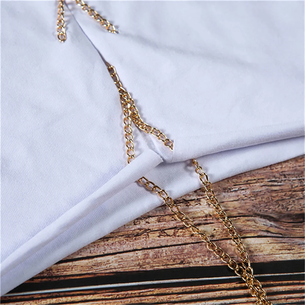 Сексуальная женская укороченная футболка без рукавов с регулируемой цепочкой, бюстгальтер