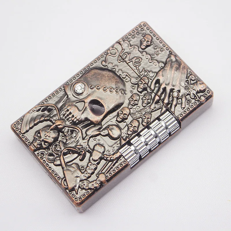 Фонарь Бесплатная череп кремень зажигалка бутан Turbo металла газовая зажигалка с питанием от прикуривателя с пожарной пинг яркий звук шлифовального круга зажигалка