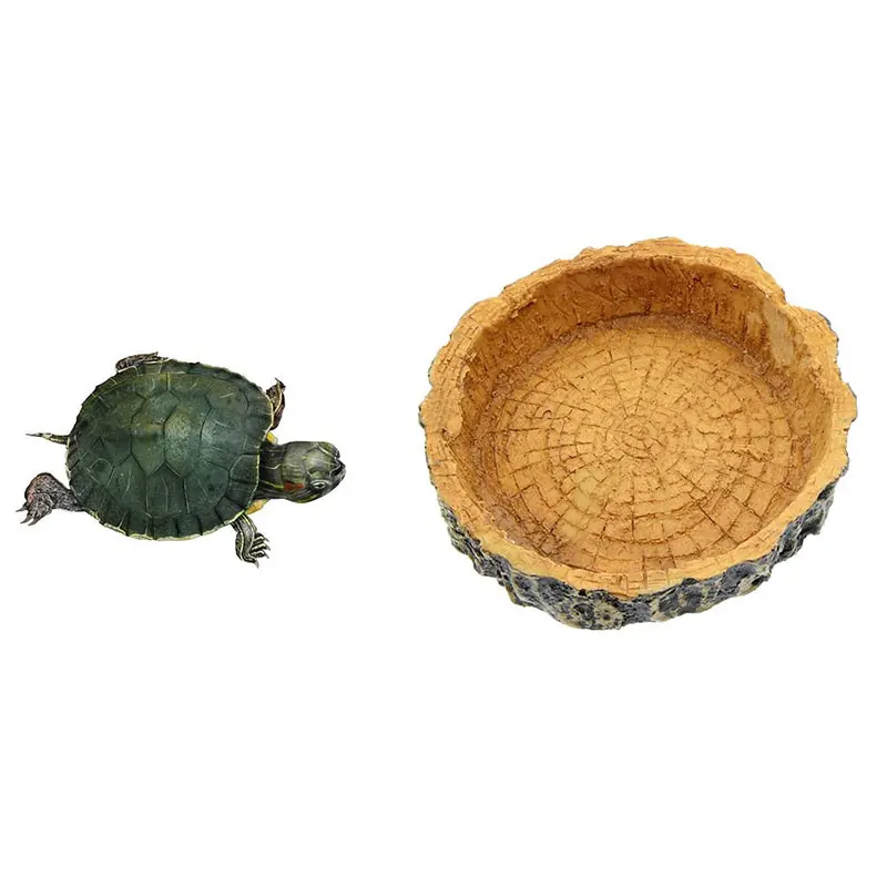 Pets Feeder Breeding Tray Reptile Water Dish Feeding Plate Turtle Natural Bowl Food and Water Dish Resin Tree Bark Feeding Bowl