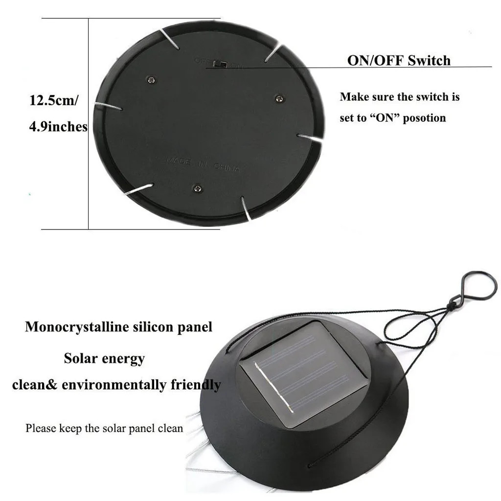 Убедитесь, что Переключатель правильно расположен в положении «ON», проверьте, покрывая солнечную батарею Панель с вашими руками, посмотрите, включается ли светильник автоматически.