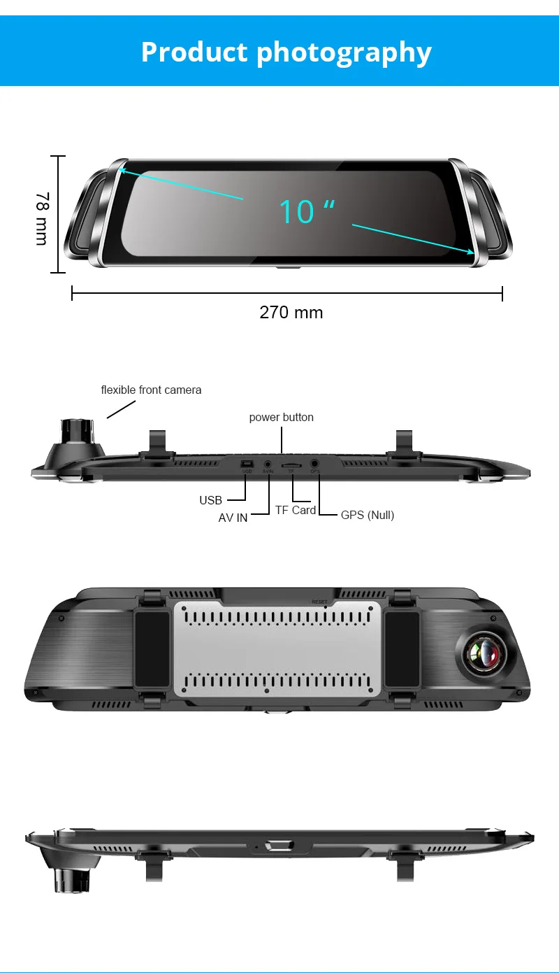 Это устройство поставляется с двумя камерами и может для передней и задней части вашего автомобиля. Две HD-камеры могут записывать одновременно автоматически захватывая каждый мимолетный момент. С поддержкой карты памяти до 64 Гб.