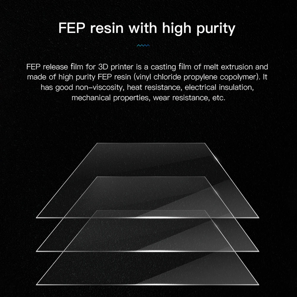 Более короткое время отверждения, лучший эффект отверждения и более высокая точность печати. FEP химически инертный, не реагирует на другие вещества.