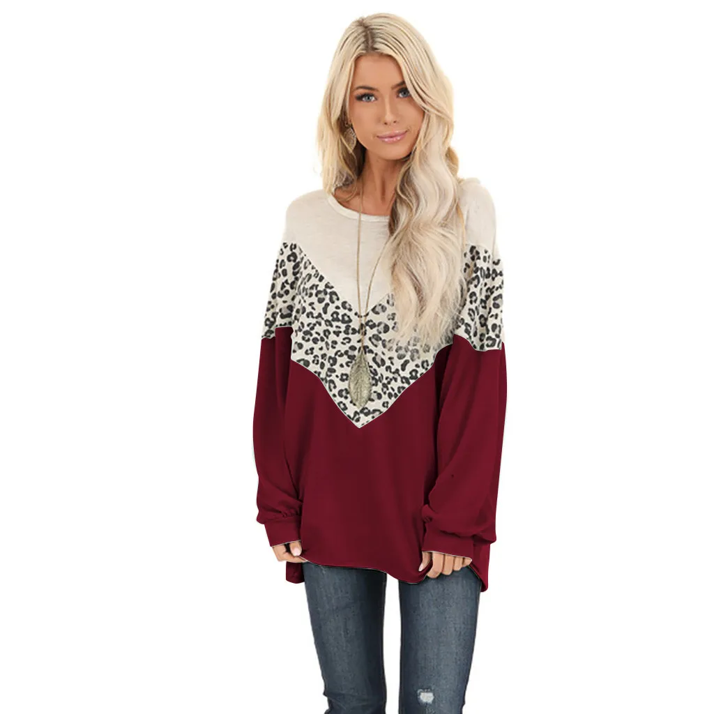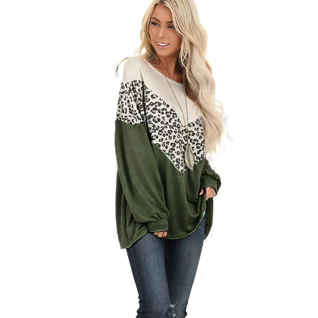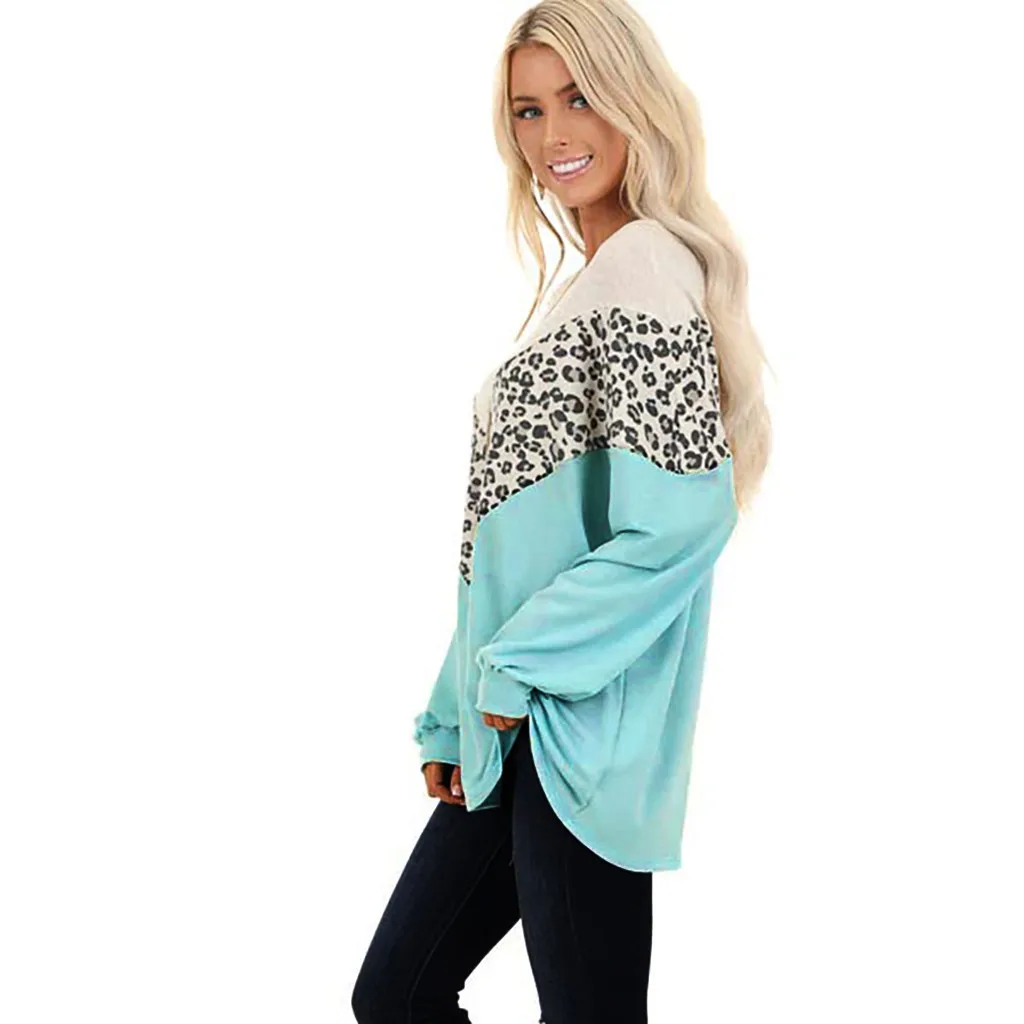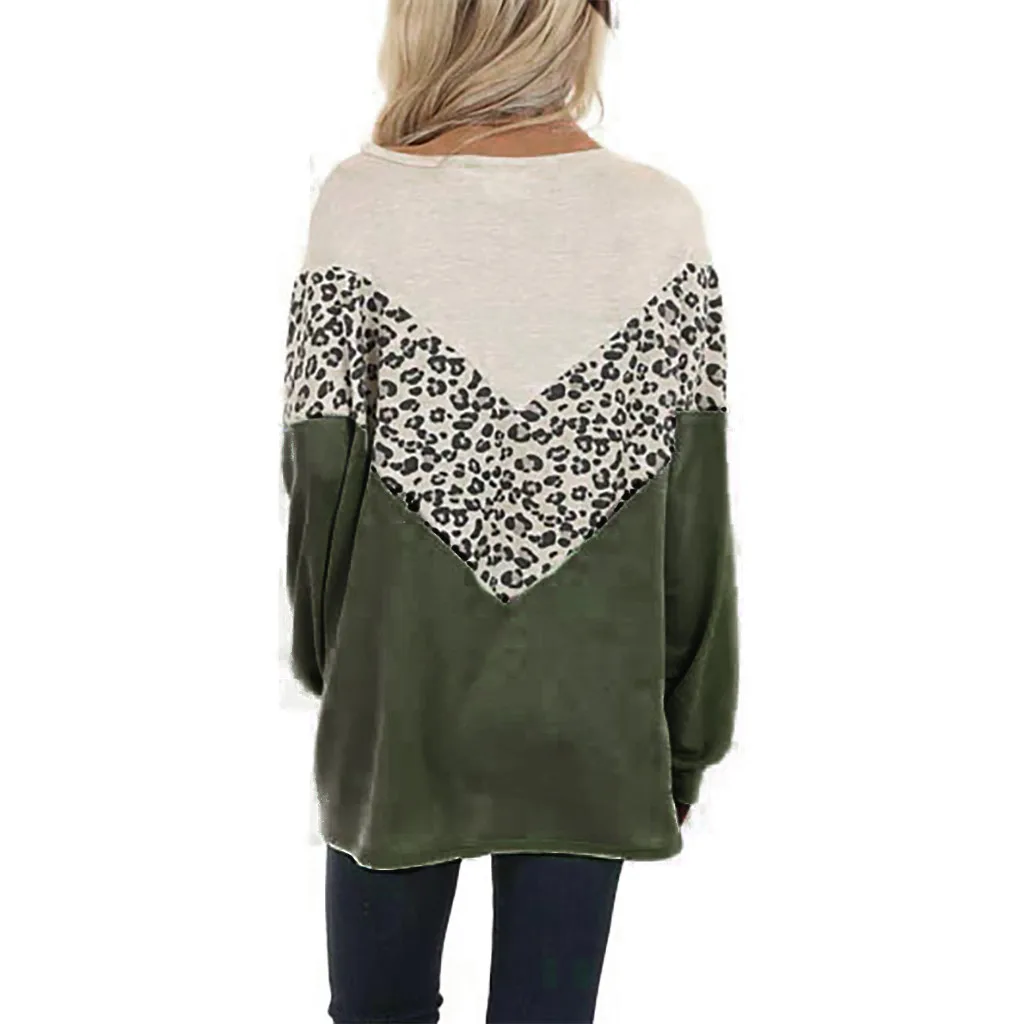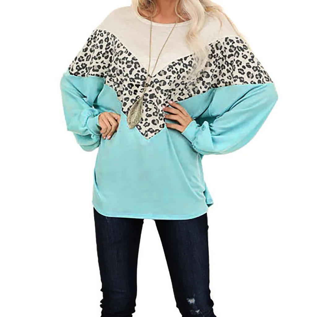 Женские леопардовые Лоскутные пуловеры с длинным рукавом, топы, рубашки, блузки