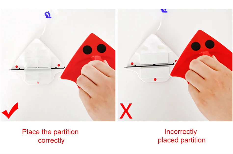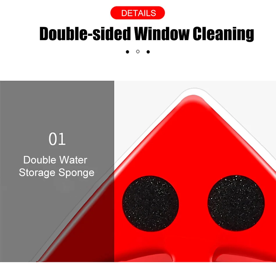 1.【 двухсторонний магнитный очиститель окон 】 Магнитный стеклоочиститель треугольной формы с мощным внутренним магнитом, фиксирующим две чистящие стороны вместе, обеспечивает комплексную очистку окон внутри снаружи. Когда вы двигаете одну сторону, другую следует. Протрите стекло внутри, очистите две стороны окна, особенно удобно для очистки окон с высотных этажей.
