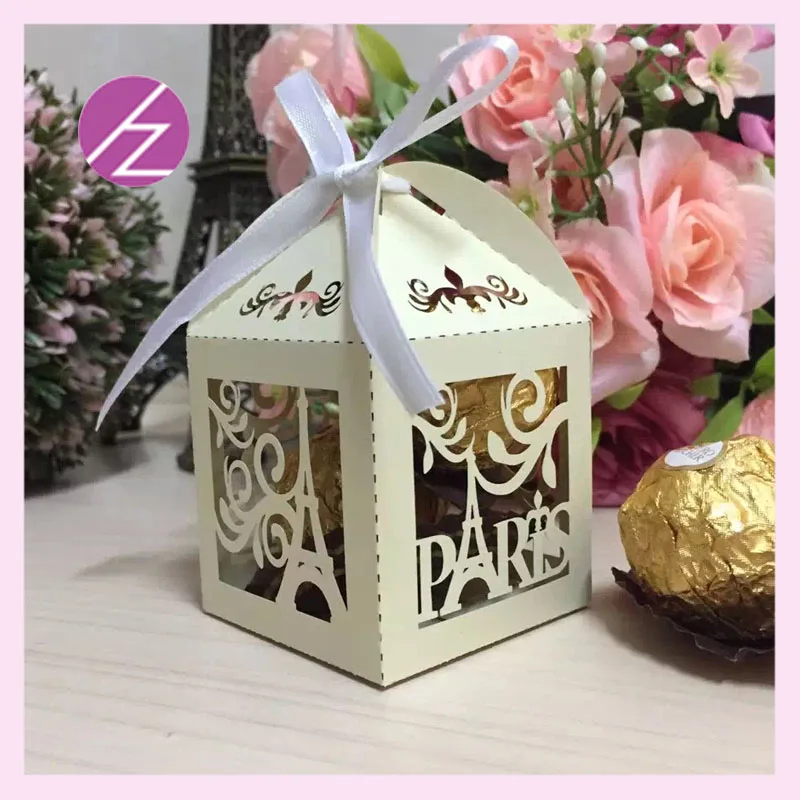 50 шт Свадебные коробки конфет для вечеринки сумки, жемчужный белый лазерный разрез подарочные коробки с лентой Сувениры и подарки коробка для вечеринок